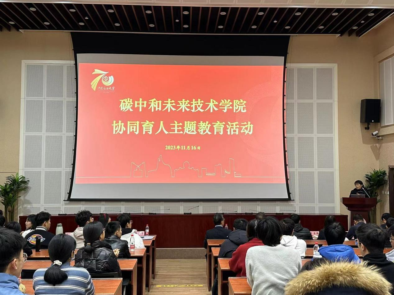 2023年11月16日,碳中和未来技术学院协同育人主题教育教学活动在主楼C308举行,会议旨在对碳中和未来技术学院全体导师进行课程思政教育培训。院长徐春明院士、执行院长蓝兴英、学院各班主任、学业导师、辅导员和全体学生参加会议。会议由执行院长蓝兴英主持。
