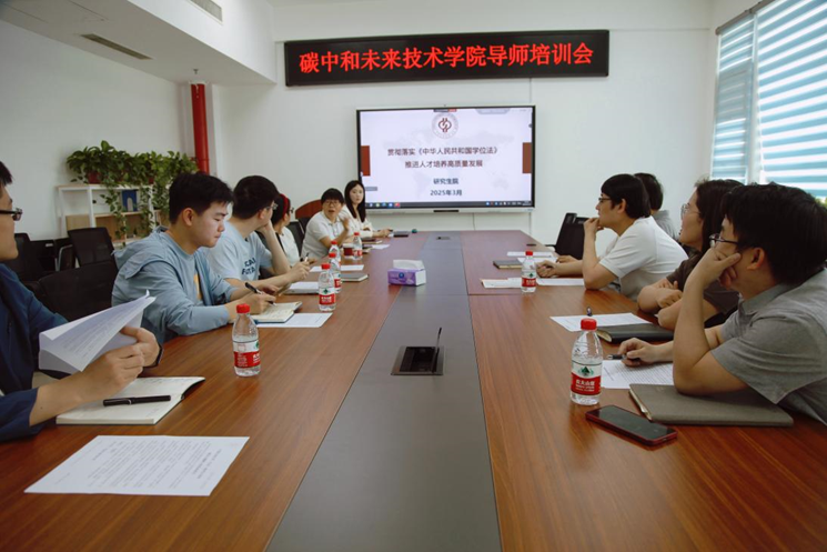 为全面部署学院各项工作,积极响应学校关于研究生导师培训工作的通知,重点讨论提升研究生导师培养能力,碳中和未来技术学院于5月12日召开春季学期研究生导师培训会,旨在促进新聘任导师迅速投入导师角色,更好履行导师立德树人职责。此次研究生导师培训活动由执行院长蓝兴英主持,学院全体青年教师和教职工参会。