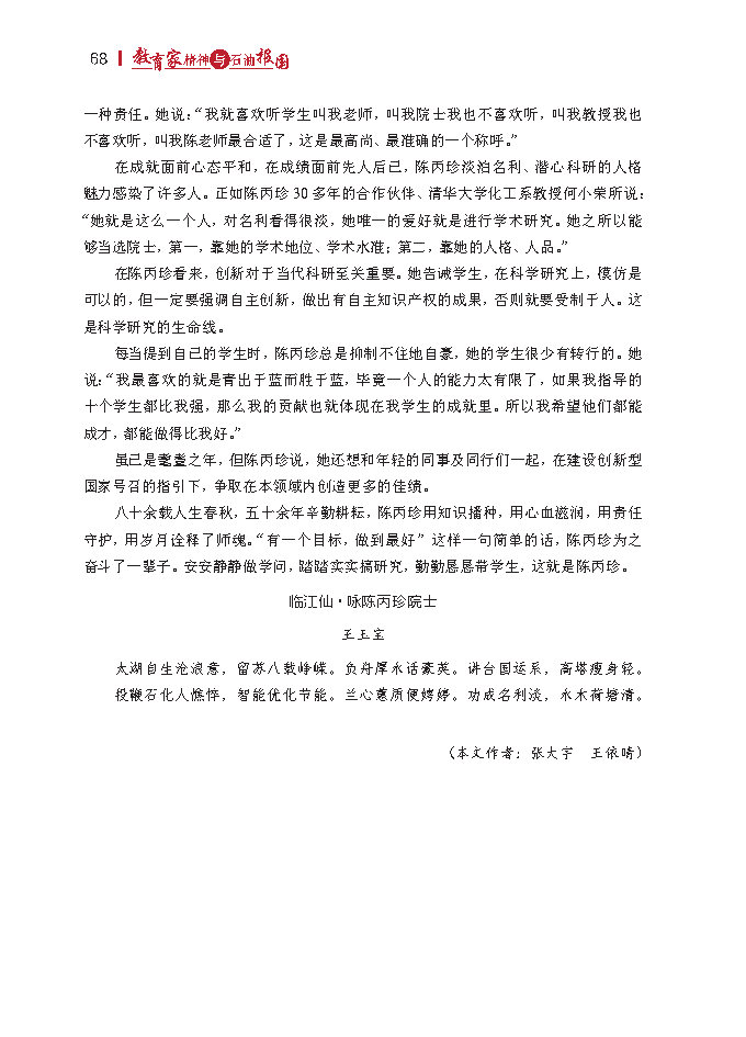 “我就喜欢听学生叫我老师,叫我院士我也不喜欢听,叫我教授我也不喜欢听,叫我陈老师最合适了,这是最高尚、最准确的一个称呼。”