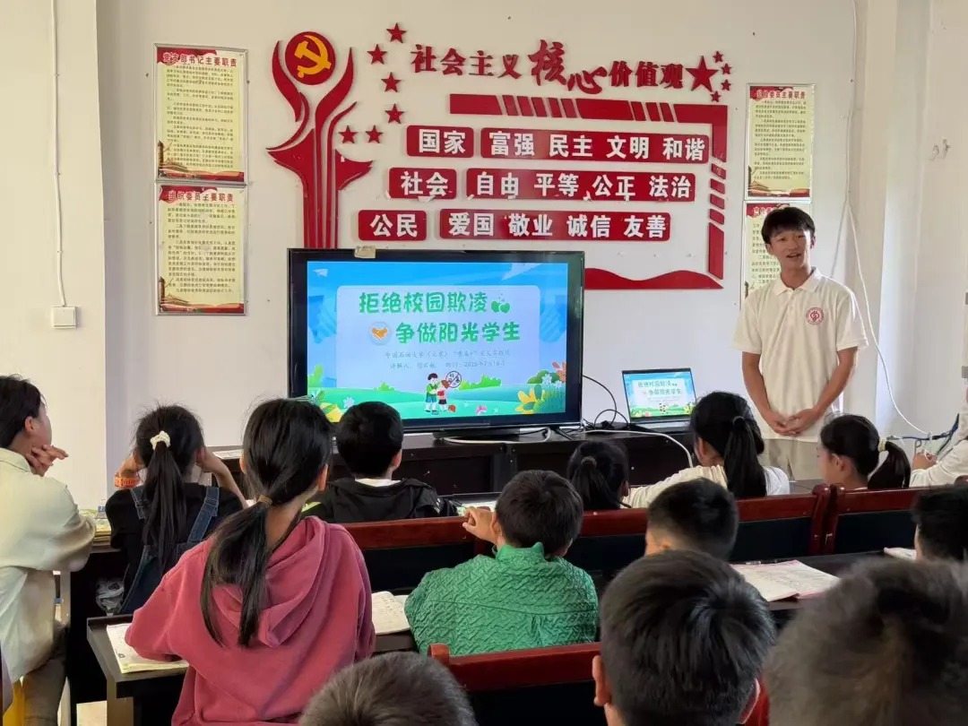 实践团同样关注孩子们心灵的阳光与安全成长。在《抗日战争》主题课堂上,成员们通过生动的情景模拟、感人的英雄故事和贴近生活的案例,将烽火岁月鲜活呈现。孩子们在角色扮演中体会抗战艰辛与不屈,认识少年英雄的勇敢。课堂不仅传递历史知识,更引导领悟团结抗争的民族气节、珍视和平的意义,并启发学习先辈勇气,在遭遇不公时勇敢发声、保护自己与同伴。