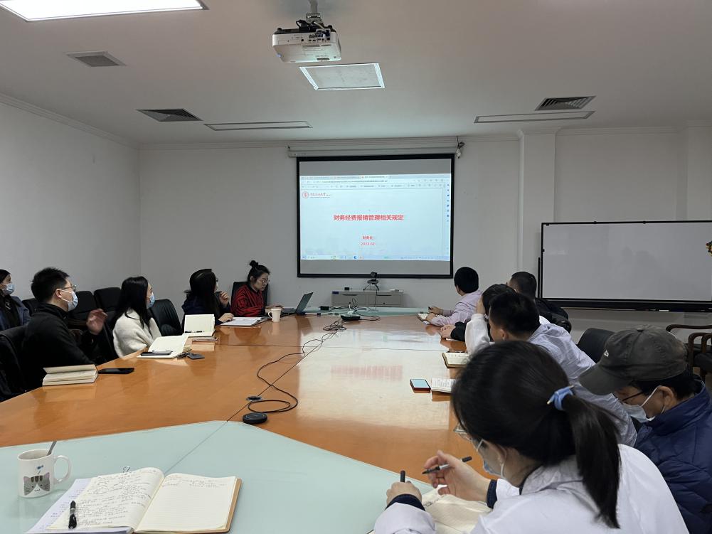 党支部书记范卓颖带领大家学习学校财务经费报销管理相关规定,包括报销政策流程的变化、预算及专项管理与监控、以及目前师生较为关注的财务热点事件。