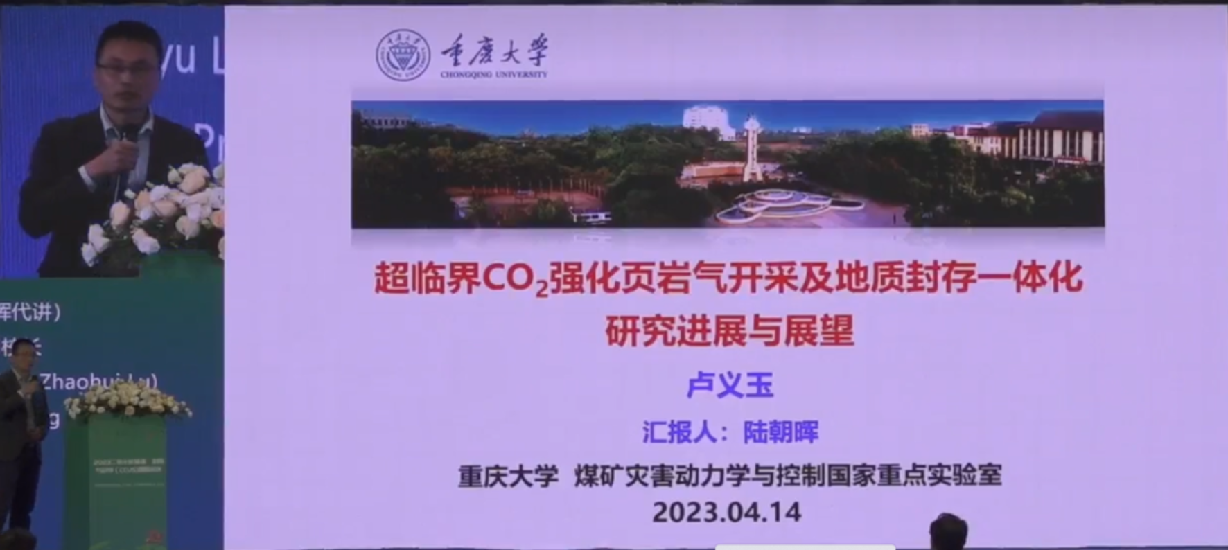 重庆大学副校长卢义玉(由重庆大学研究员陆朝晖代讲),发表了关于《超临界CO2强化页岩气开采及地质封存一体化研究进展与展望》的报告,报告中指出我国页岩气赋存条件复杂,高效开发面临巨大挑战。团队率先提出超临界CO2强化页岩气高效开发及封存一体化学术构想,解释了页岩气储层超临界CO2压裂缝网形成机理和二氧化碳置换页岩气动力学及封存机理。未来,超临界CO2强化页岩气开采及地质封存一体化技术有望开辟一条绿色、环保、高效的页岩气开发新途径,实现CO2地质封存与利用的完美结合。