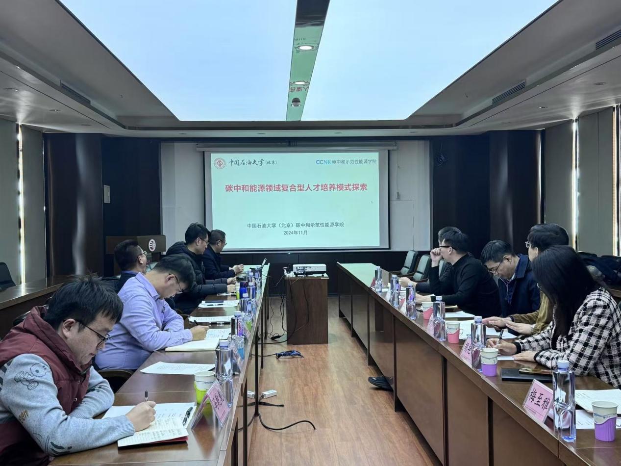 宋先知对王建胜一行的到来表示热烈欢迎,并对本学院情况进行了基本介绍,表示学院的发展离不开中石大的大力支持。李兆慈随后对学院的的发展历程、组织架构、人才培养、成果进展等进行了详细地介绍。浙江工业大学教务处处长付传清也对其校新创办学院——能源与碳中和科教融合学院作出了大致的介绍。