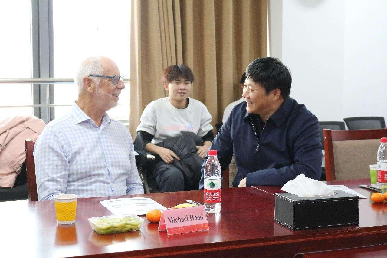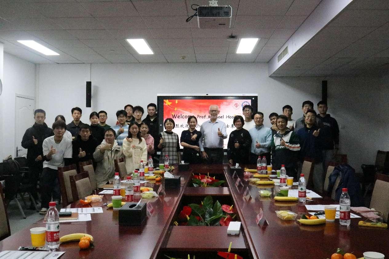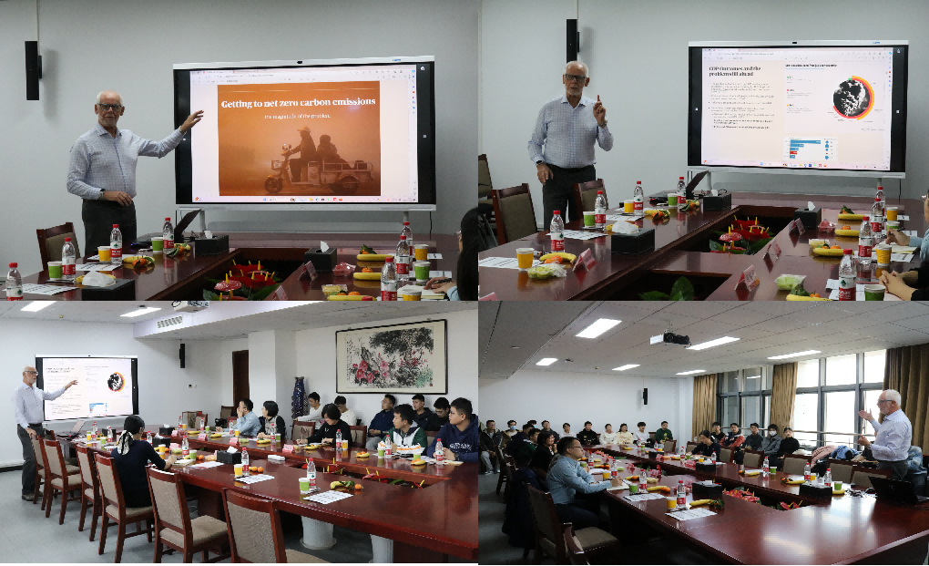 首先,Michael Hood院士在北校区主楼A1421为我校师生带来题为“Getting to Net Zero Carbon Emissions”的学术报告会,由杨睿月副教授主持会议。Hood院士目前主要致力于CCUS理论与技术的研究,在此次研讨会中,Hood院士详细地介绍了实现净零碳排放的意义、国际间的合作、气候环境的挑战、COP(缔约方会议)结果与问题、非化石燃料电等内容,并与老师同学们进行了热烈的交流互动。