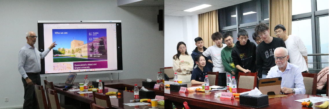 接着,Hood院士介绍了昆士兰大学的发展历史、学科优势、科研实力、对华合作等概况,并表示昆士兰大学致力于教育创新和鼓励创业,期待未来能加强与我校的学生联合培养、科学研究和交流与合作等。会后,面对我校师生的热情提问,Hood院士进行了耐心的解答,为同学们提出了宝贵的建议,并向同学们展示自己游学期间的照片,鼓励同学们学好英文、开拓眼界。