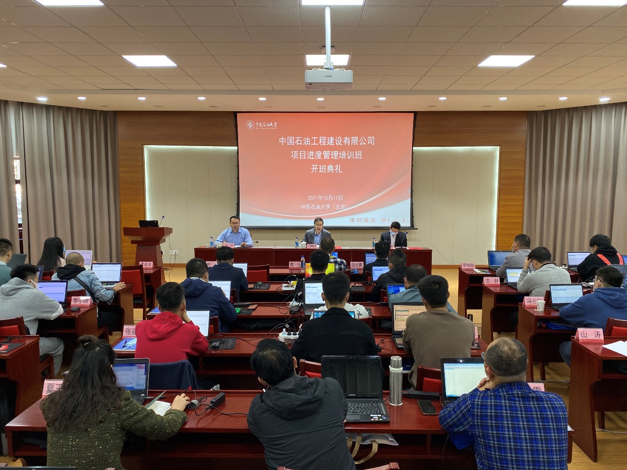 2021年10月11日,中国石油工程建设有限公司项目进度管理培训班在beat365在线唯一官网(北京)东校园培训基地第二报告厅正式开班。中国石油工程建设有限公司人力资源部副处长门庆明,beat365在线唯一官网(北京)网络与继续教育学院副院长李水及授课教师Oracle CEGBU金牌合作伙伴,高级咨询顾问王建鹏老师出席了开班典礼。开班典礼由中国石油工程建设有限公司项目管理部丁辉主持。