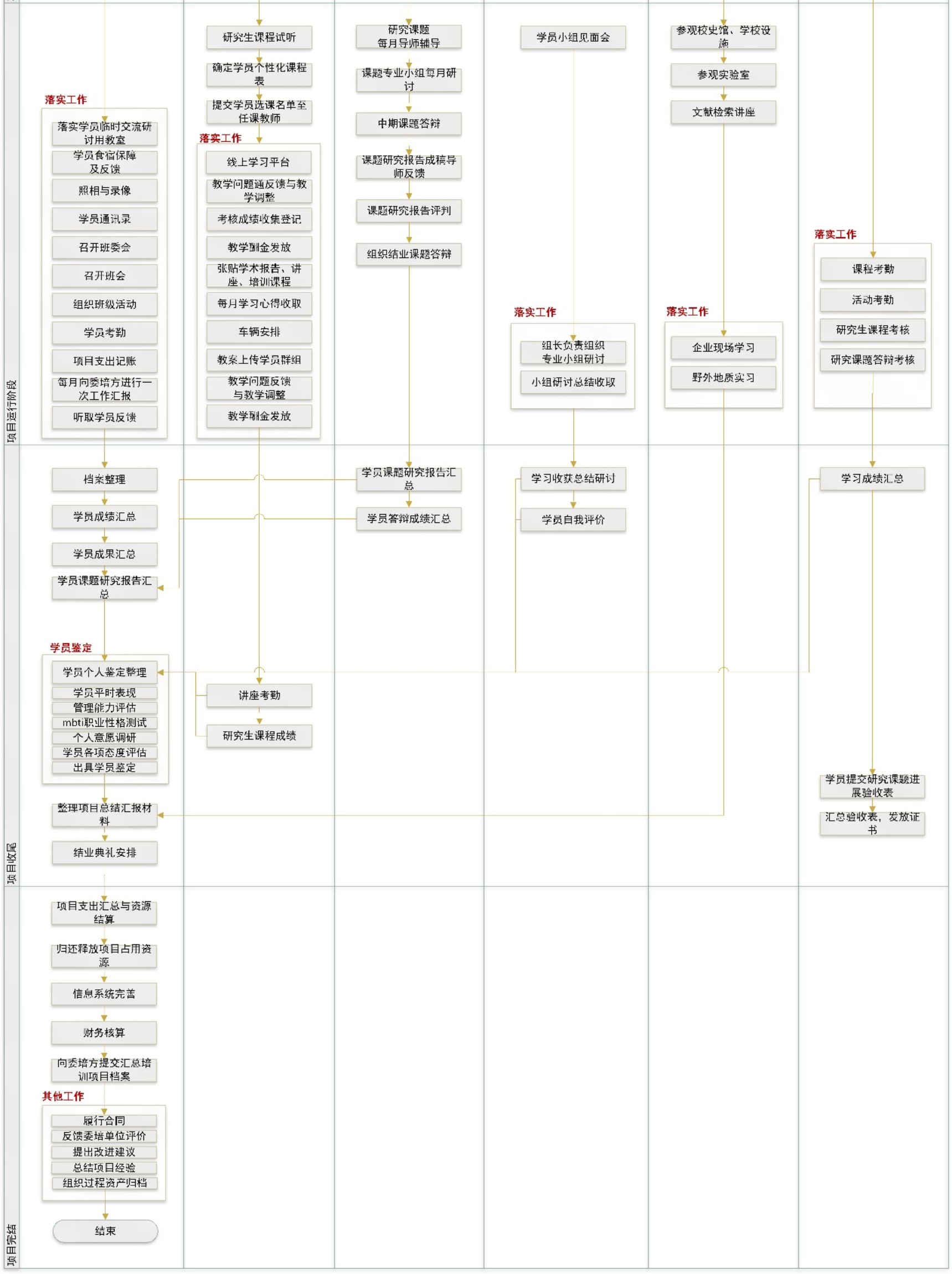 第六条 培训期间进行每两周1次的相关专业分组专题研讨,覆盖所有人员携带课题的研讨,提高专业小组对每位学员在校研究项目的支持力度,进一步将企业课题研究落地,每人每月提交一份研讨报告,说明研讨收获、研究进度、下一步计划。