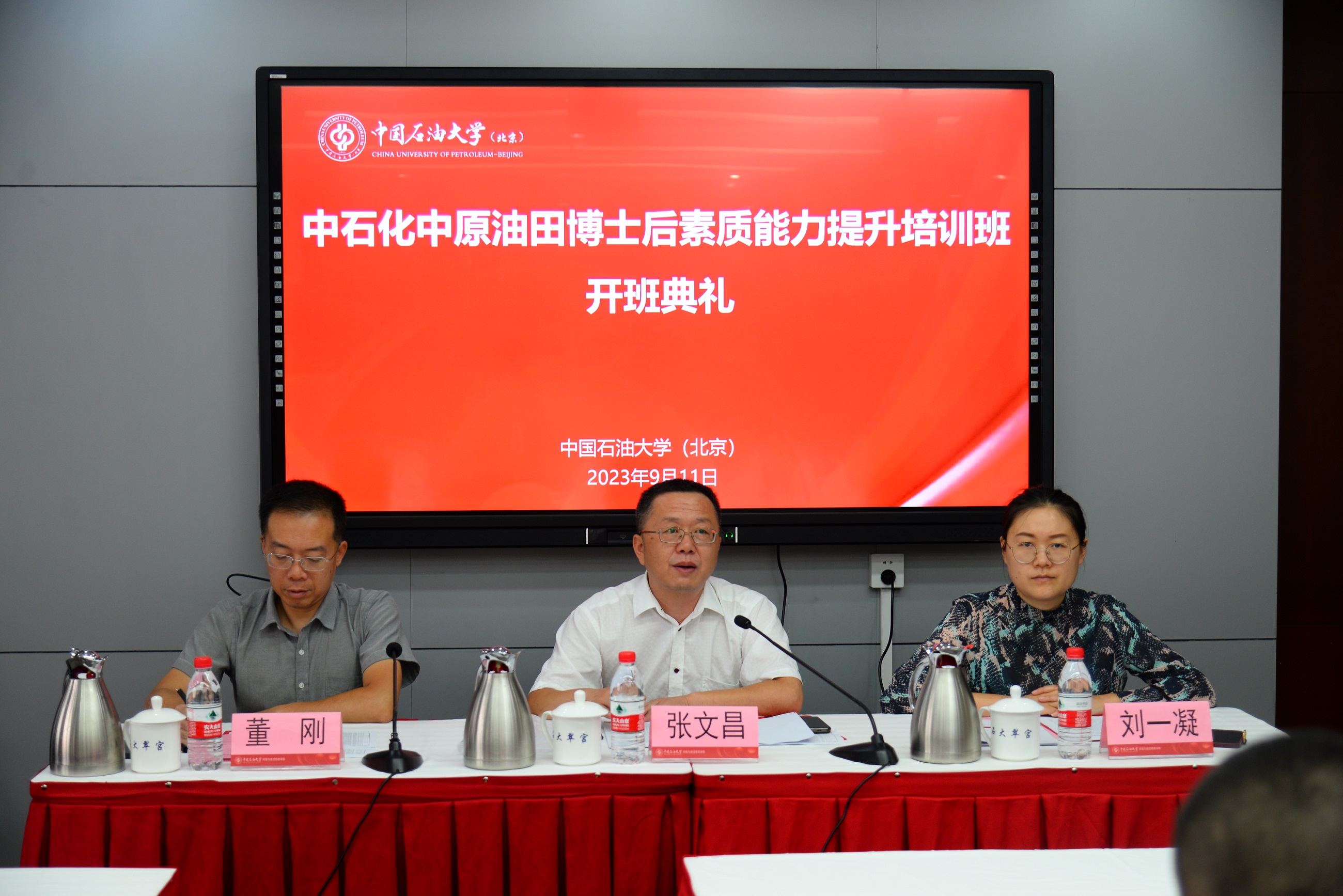 2023年9月11日,中石化中原油田博士后素质能力提升培训班顺利开班。中原油田首席专家、科技信息部经理张文昌,beat365在线唯一官网(北京)网络与技术教育学院副院长刘一凝出席开班典礼。