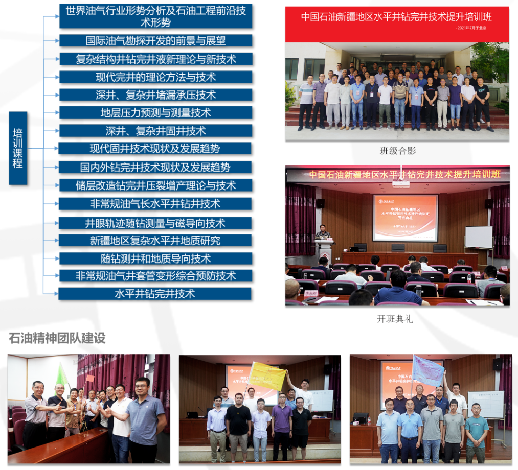 项目涉及国内外钻井技术最新前沿进展、水平井及多分支井技术、复杂地层井壁稳定技术、国内外钻井液新进展、欠平衡钻井技术与应用、超深井技术与应用、气井技术研究与应用、复杂固井技术、国内外钻井新工具研究与应用等内容,提高参培人员的理论水平和科技创新能力,为企业专业技术骨干人员储备奠定基础。