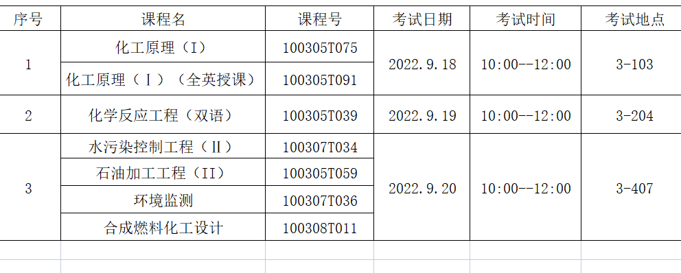 各位同学好,以下表格内容为化学工程与环境学院2022-2023秋季学期开学初学院开课必修课补考具体安排,请各位同学注意查阅并按时参加考试。