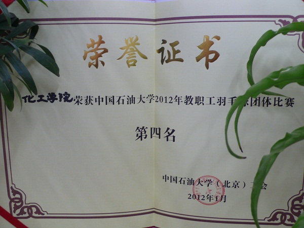 我院荣获2012年教职工羽毛球赛团体比赛第四名