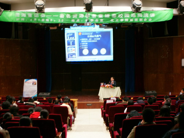 童媛春先生与我校师生进行了长达三个小时的交流,阐述了能源在当今世界的重要性,讲述了能源从古代到现代的发展历程,并论述了金融危机产生的原因和金融危机对能源领域潜在的威胁。他的论述从表面向本质层层深入,并结合自己在国内外的所见所闻、身行力践,客观而深刻的揭露了石油行业内幕,在对比中让同学们看到中国石油业还与世界先进水平存在着一定差距,令同学们受益匪浅。同时童老师还虚心回答同学们提出的问题,并帮助同学们进一步剖析了“南海问题”和“俄格冲突”。整个会场上下互动,气氛热烈,一阵阵掌声把讲座推向高潮。童老师还全面的讲解了当代大学生最关注的问题——就业问题,特别是金融危机时刻的就业问题。童老师笑着说:“很高兴能和同学们一起探讨我们国家乃至世界所面临的严峻问题,看得到石油大学学生们都这样的积极踊跃,真是我们国家的福气啊!”