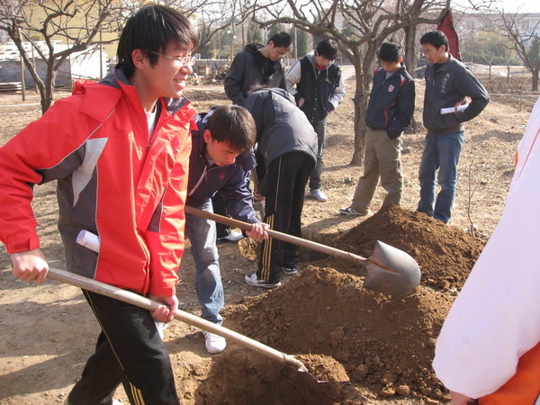 在明媚的阳光下,同学们来到了整洁、温馨的“爱地养老院”,并受到了院长的热烈欢迎。首先,同学们将事先购买好的树苗运送到指定种树地点,齐心协力将树苗栽种在养老院后院花园,给春日的养老院凭添了一份生机;植树过后,同学们来到活动大厅,观看了老人们表演的的精彩节目,同时也给他们献上了同学们自编自演的歌舞节目和新鲜有趣的趣味化学实验,为他们带去了欢乐。随后还给老人们分发了“老年疾病预防”等知识宣传材料。