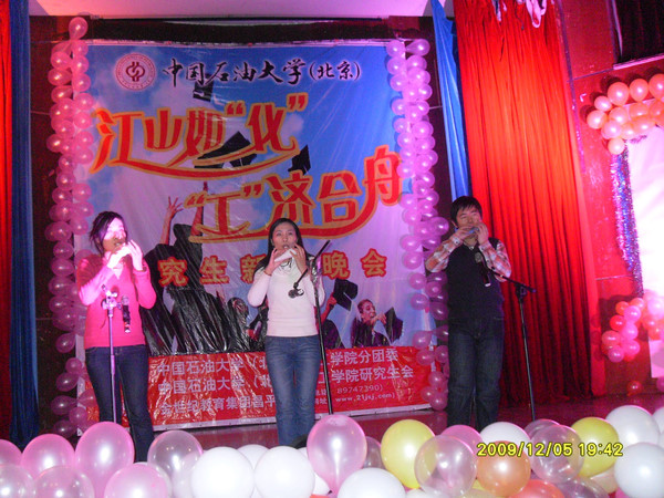 2009年12月5日晚,化工学院 “江山如‘化’,‘工’济同舟” 研究生新生晚会在科学会堂成功举办。本次晚会由化工学院分团委主办,化工学院研究生会协办。