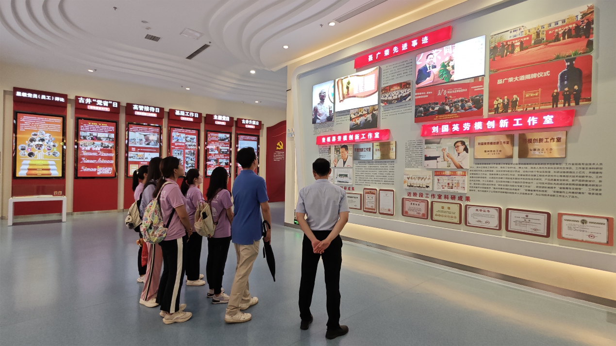 展厅核心的展板上,载录着聂广荣老厂长的事迹。“他作为优秀党员好代表、艰苦奋斗的好榜样,为我们古井人树立了一座不朽的精神丰碑。他的一生,为古井贡酒鞠躬尽瘁,化辛勤拼搏注入酒酿,结创新精益助力老窖焕发生机,使古井贡酒荣登中国老八大名酒之席。他的故事激励着一代又一代我们古井人前仆后继地忘我奋斗。”于经理将聂厂长的事迹娓娓道来,实践团成员在展板前伫立良久,无不为之动容。实践团成员纷纷表示,深受聂厂长故事的鼓舞,党员所凝结的精神在各行各业中都能熠熠生辉,在何处何地都可大有作为,推动着时代进步的浪花滚滚向前。