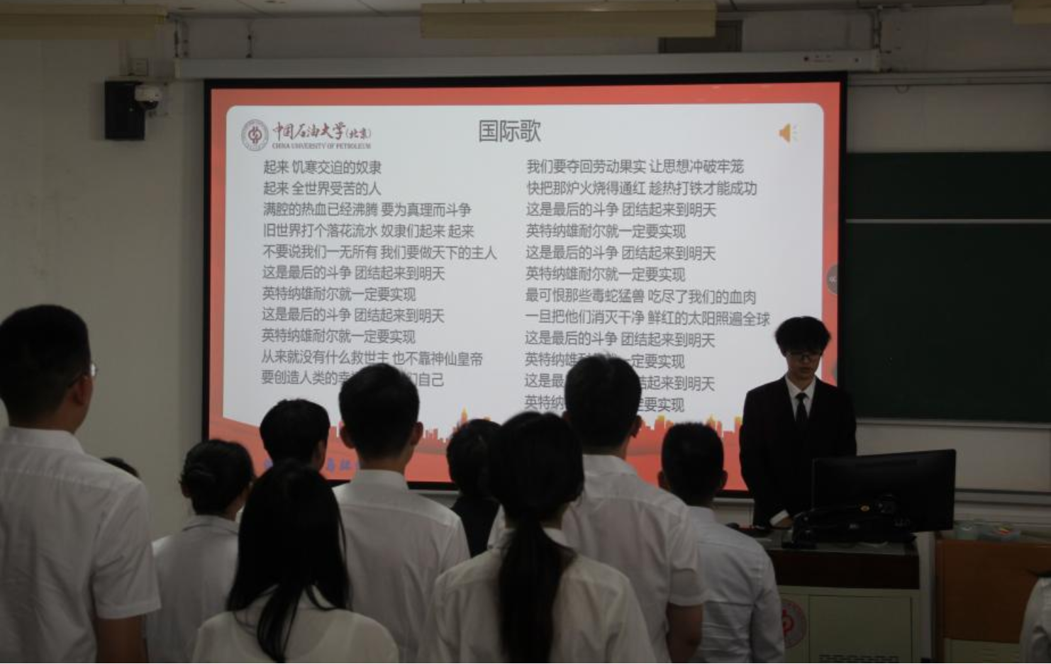 最后,大会在全体同学激昂的《国际歌》的歌声中圆满结束!