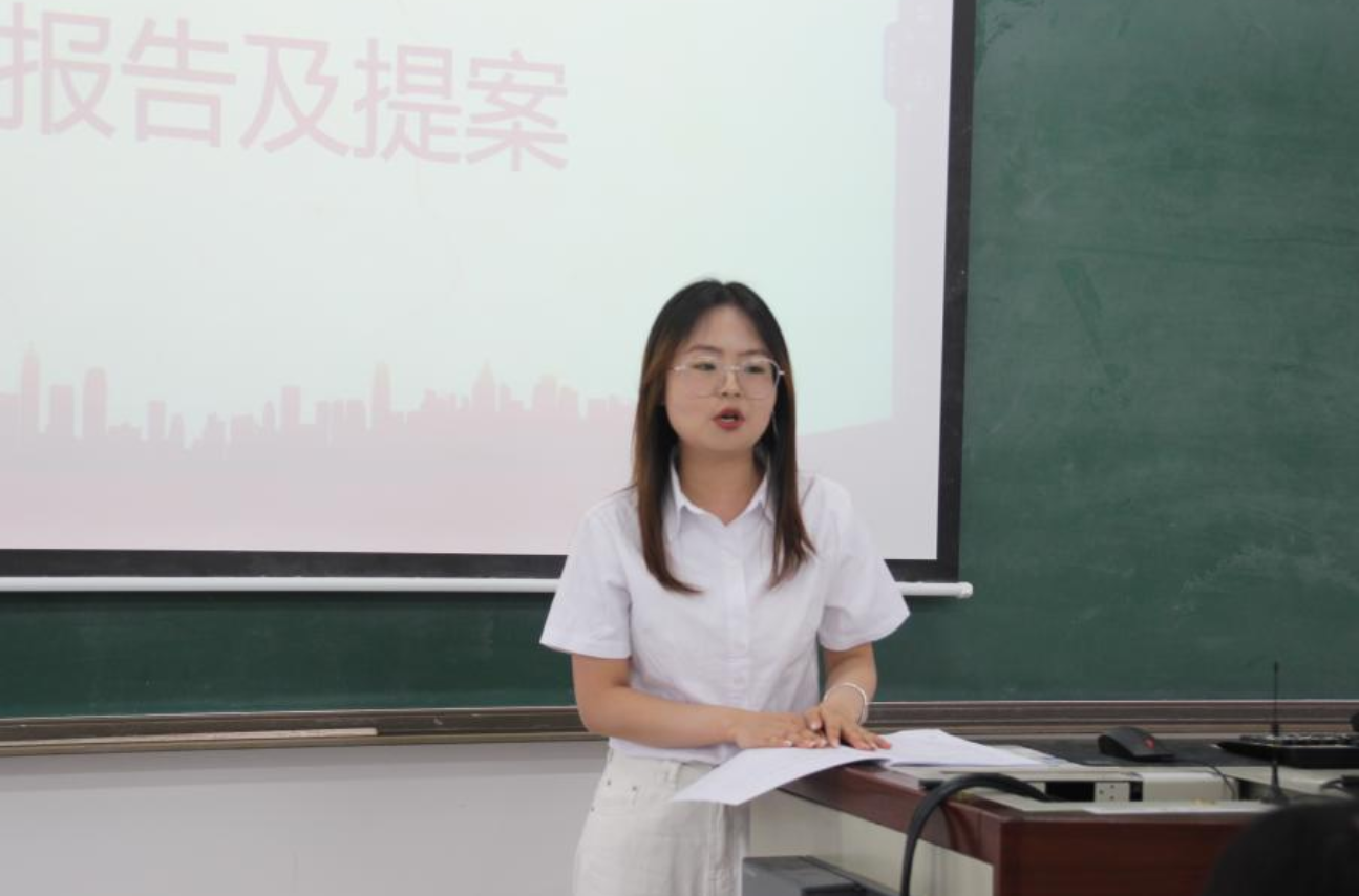 接下来,上一届主席团成员做了工作报告,首先是化学工程与环境学院第三十三届学生会主席铁欣雨做工作报告。
