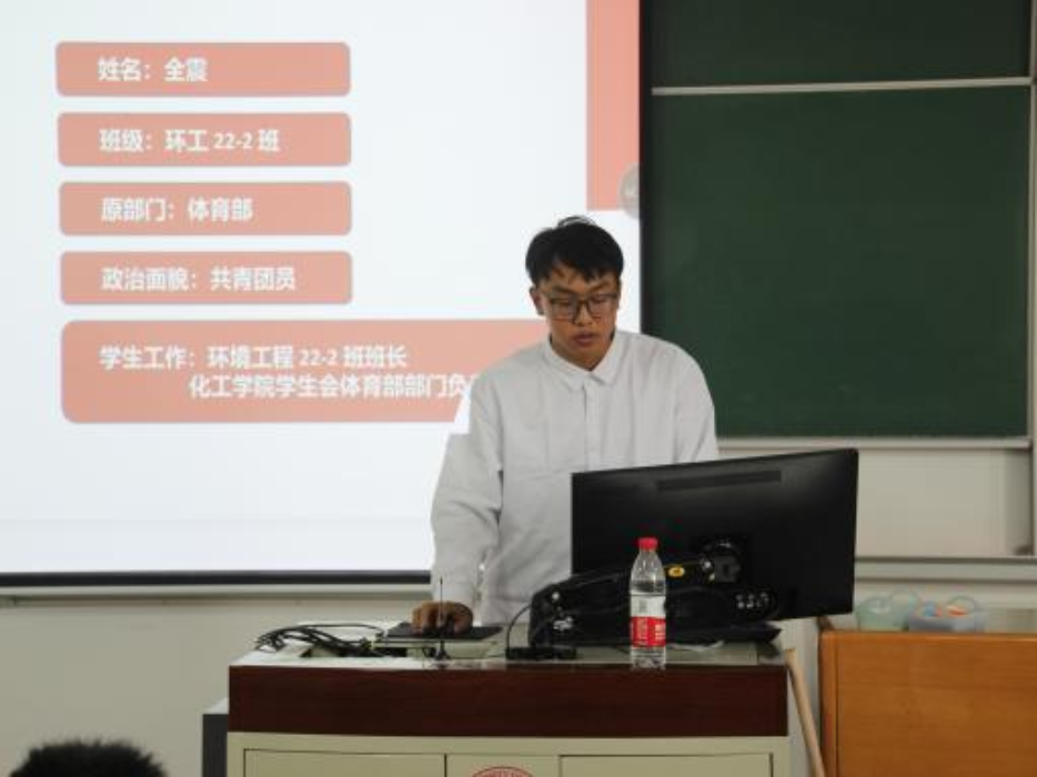 接下来,进行了候选人答辩,首先是化学工程与环境学院第三十四届学生会主席团候选人答辩。