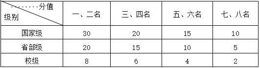 各类比赛单人或集体项目按下表加分,非主力队员按2/3折算。