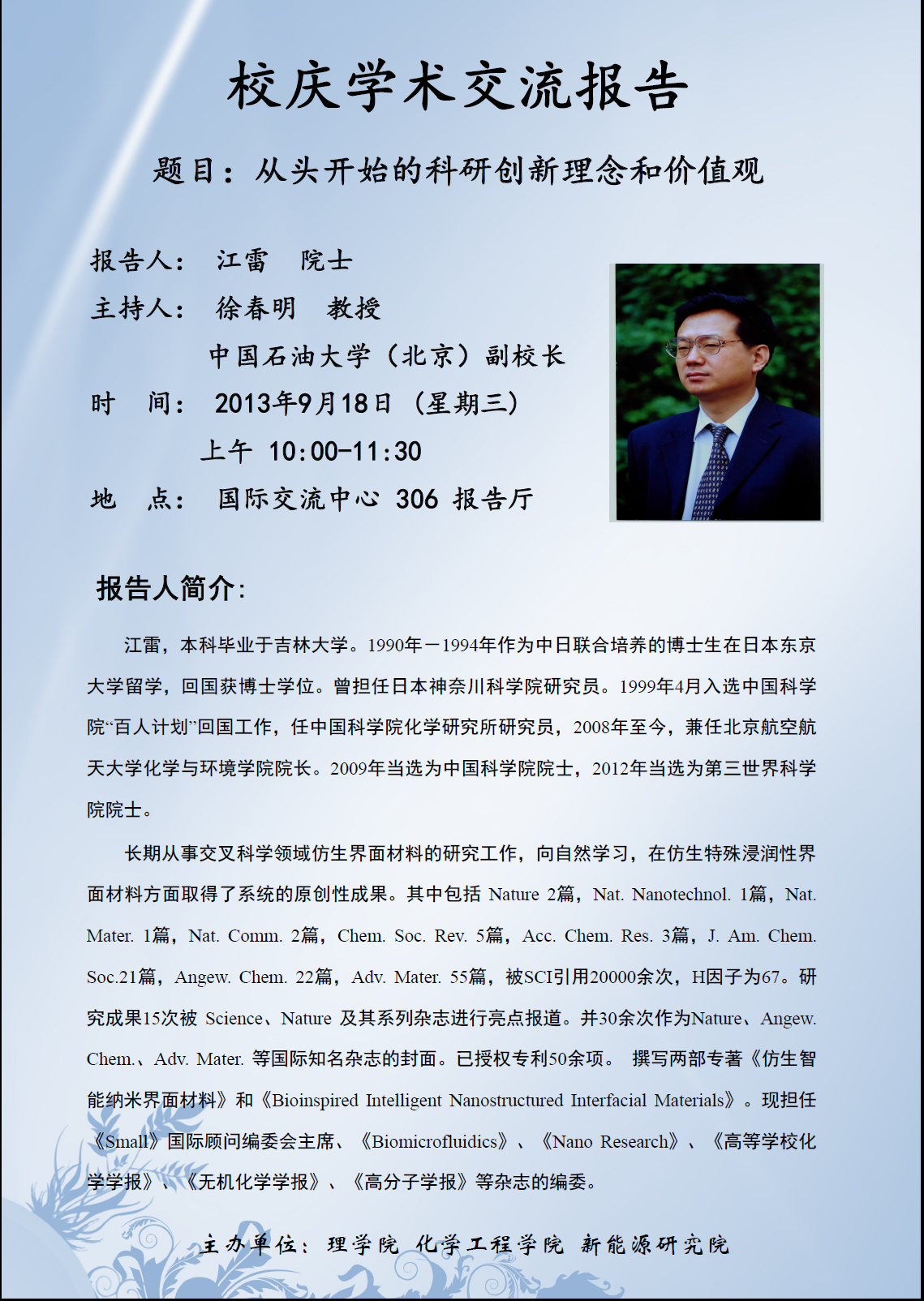 校庆学术讲座-从头开始的科研创新理念和价值观(江雷院士)