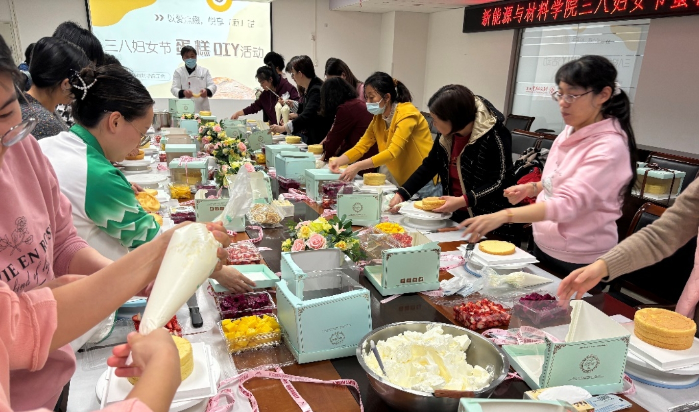 为庆祝三八妇女节的到来,丰富女教职工精神文化生活,展现巾帼风采,新能源与材料学院工会于3月7日面向女教职工举办了“以爱点缀,悦享‘新’甜”——三八妇女节蛋糕DIY活动。