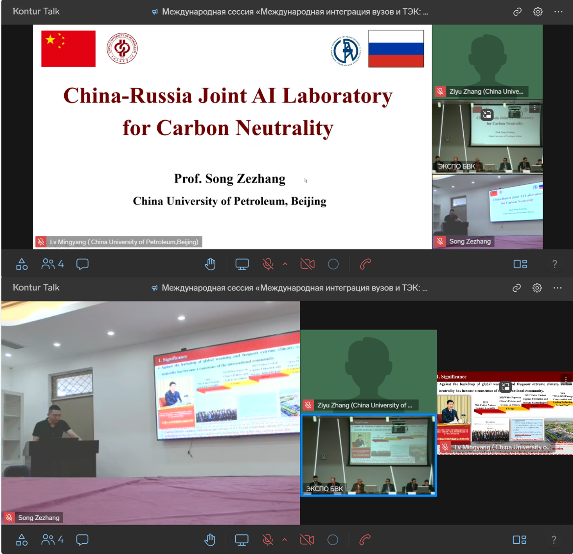 在圆桌会议“International Integration of Universities and Fuel & Energy Complex: Paths to Sustainable Development”上,宋泽章做了题为“China-Russia Joint AI Laboratory for Carbon Neutrality”的特邀报告,展示了由beat365在线唯一官网(北京)与乌法石油技术大学于2023年10月成立的中俄碳中和AI联合实验室的建设进展以及未来规划。共同参加圆桌会议的还有来自俄罗斯、巴勒斯坦、阿尔及利亚、哈萨克斯坦、鞑靼斯坦共和国等5个国家6所高校的校长和院长,巴勒斯坦教育部总干事。