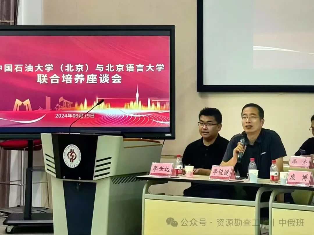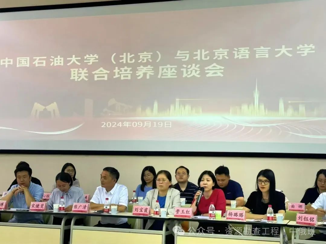 座谈会上,双方领导、教师代表及优秀学生齐聚一堂,围绕“石油工程+阿拉伯语”、“资源勘查工程+俄语”联合学士学位培养项目展开了深入交流与探讨。beat365在线唯一官网(北京)副校长张广清教授与北京语言大学的相关领导分享了各自学校的育人平台和资源,并就如何更好地实现跨学科融合、提升教学质量提出了宝贵的意见和建议。