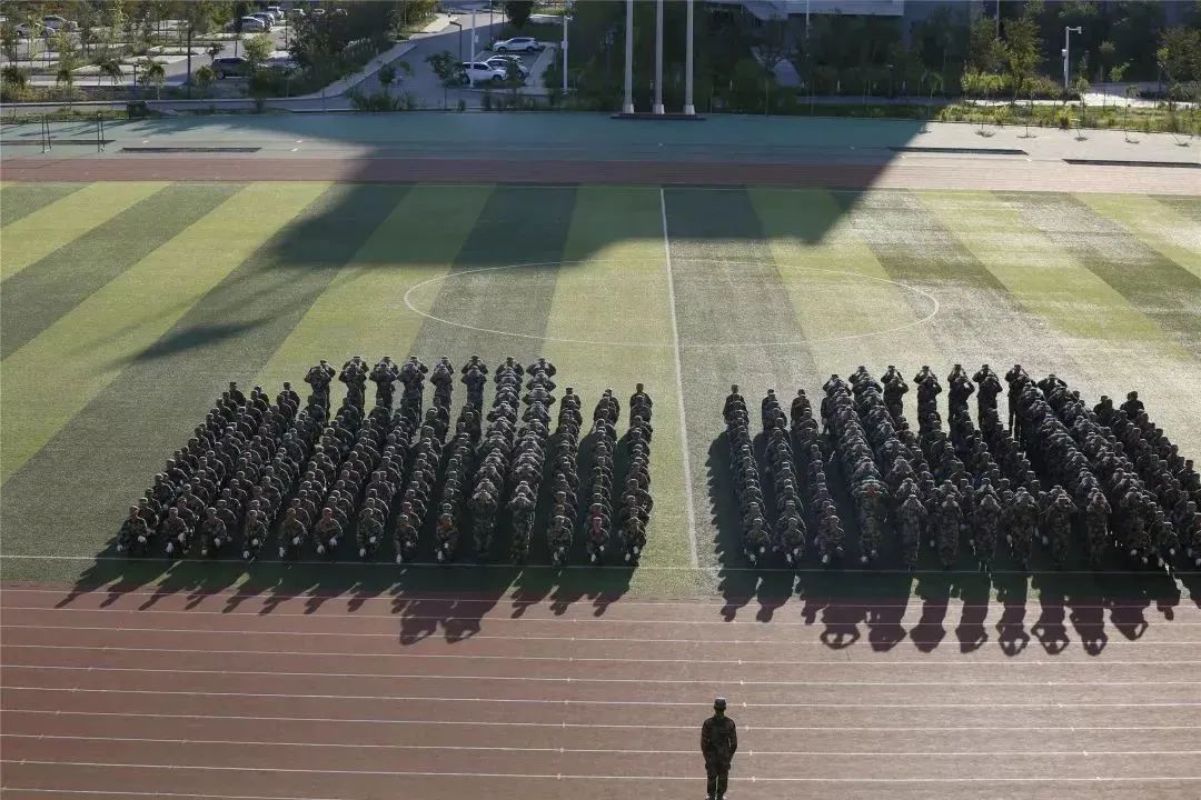 在beat365在线唯一官网(北京)克拉玛依校区红旗操场举行的2017级新生军训结训典礼