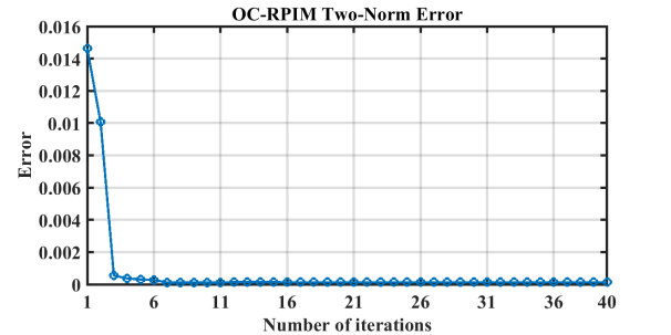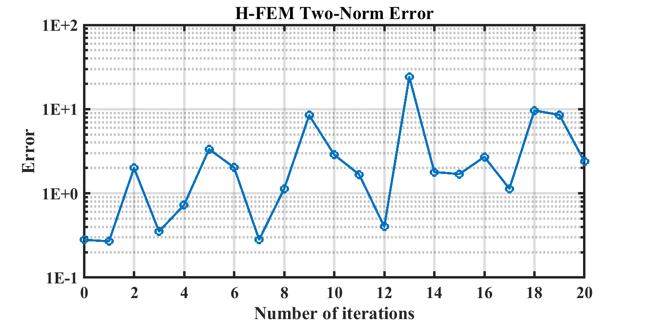 Fig. (a) h-FEM iteration two-norm error curve; (b) OC-RPIM iteration two-norm error curve