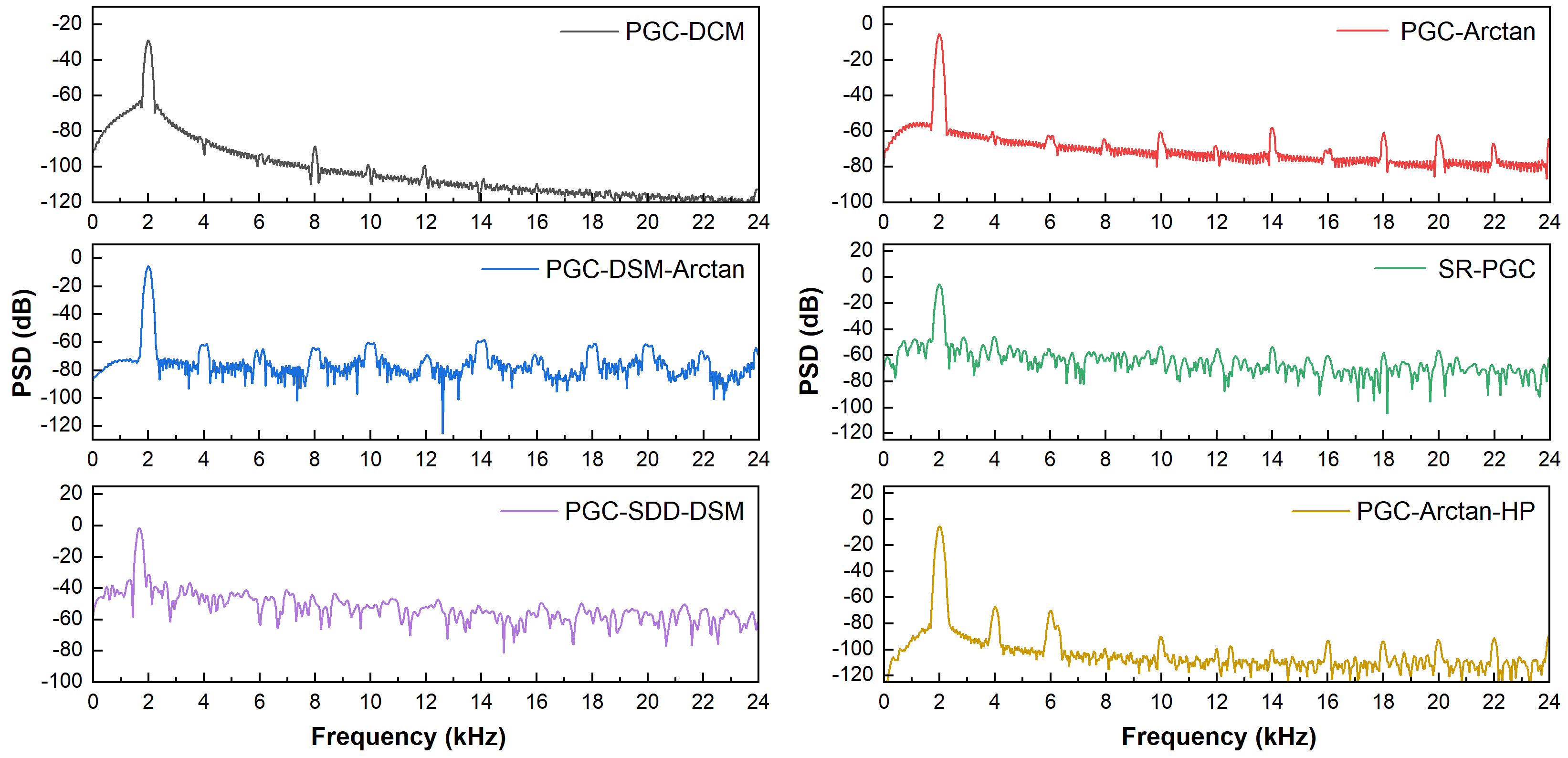 图4 各算法解调结果的功率谱密度