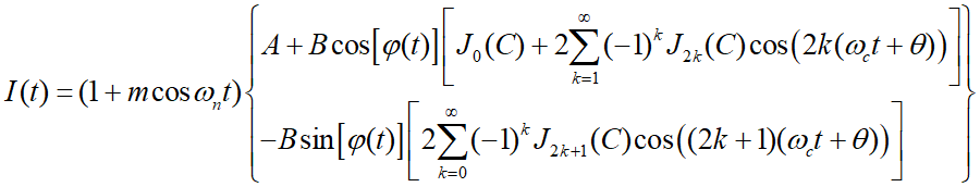 其中,直/交流分量A/B与输入光功率有关;m为LID的振幅,ωn为LID的角频率;C为调制深度,ωc为载波角频率,θ为载波相位延迟;φ(t)是待测相移信号;Ji(C)为i阶贝塞尔函数。