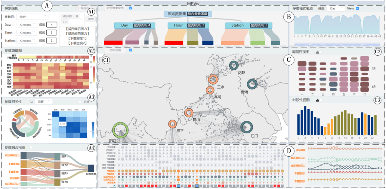 面向成品油管道历史运行的多参数数据,本文提出一种基于多参数融合的张量分解方法,用于提取历史数据中蕴含的时空模式,并从多参数分组融合、时空模式提取及可视化、原始多参数对比分析等角度设计了可视化系统MPVis。该分析方法及分析流程可以进一步应用到其他更广泛的工业过程领域,为多参数综合表征的时空模式提取与分析提供了有力支持。