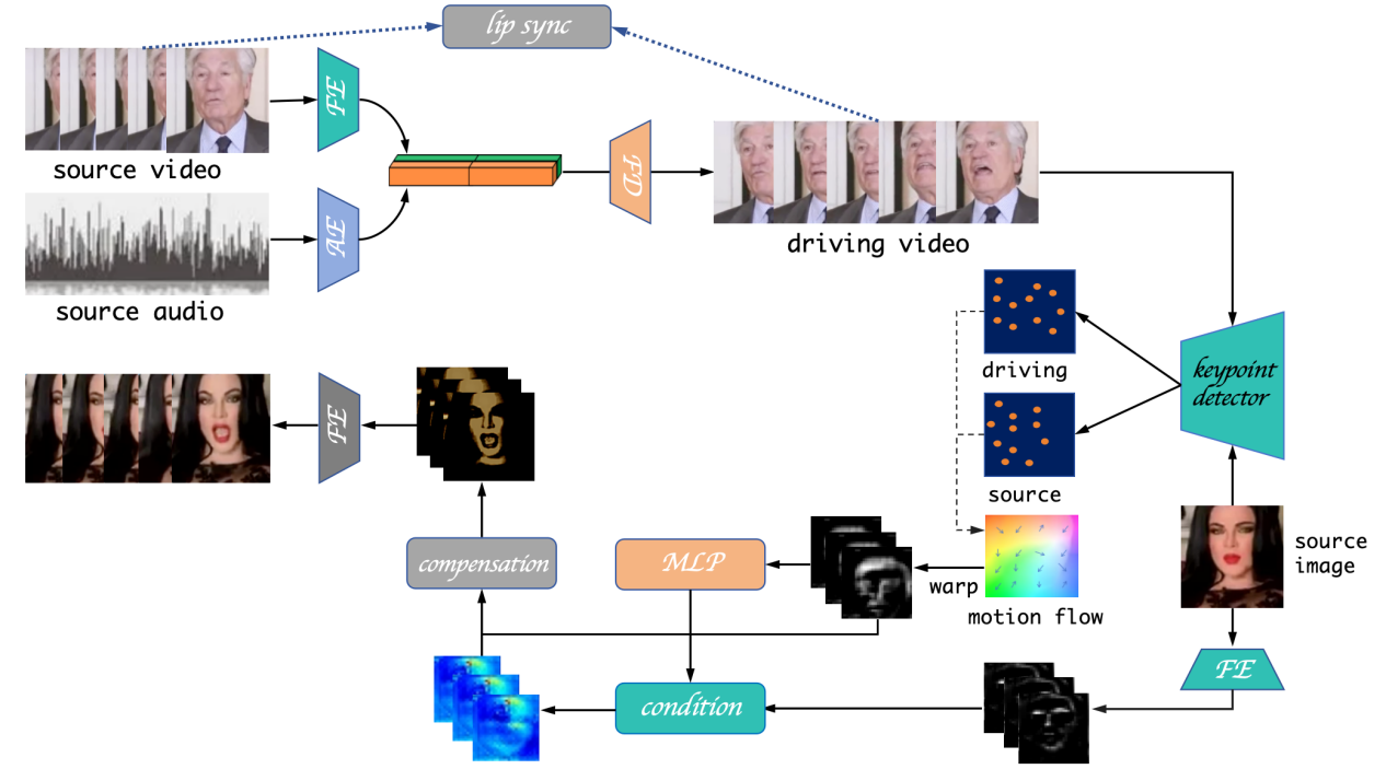 唇形编辑是指在视频处理和图像合成中,用声音信号将人物或虚拟角色的嘴部运动进行人为改变的技术。例如给定源视频(source video),再给定驱动音频(driving audio),那么得到的输出是源视频人物以驱动音频的音色和说话内容讲话,其唇部运动方式是与该音频对应的。