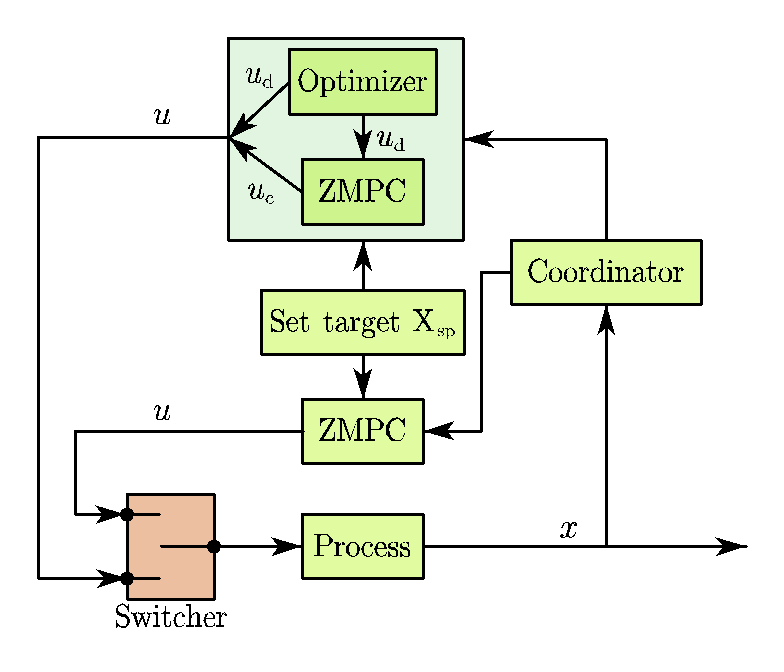 当控制连续的生产过程时,整个控制系统可能具有两个工作状态。控制模式和优化模式。值得注意的是,以优化模式运行的系统不会完全关闭控制器。在本文提出的框架中,优化基于冗余控制变量,这意味着有一个优化器来调整冗余变量,而其余变量仍在区域控制器的控制之下。