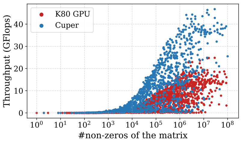 图 4:K80 GPU和Cuper在2,757个评估矩阵上的吞吐量对比