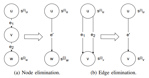 为求解该问题,本文提出节点消除和边消除技术简化原计算图,如图1所示。