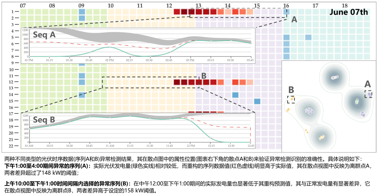 随着光伏时序数据量的指数级增长,构建并融入直观的可视化元素和交互操作界面,辅助专家进行异常识别、分析和解释。