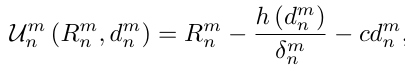 从经济学的角度出发,使用基于边际效用递减法则的疲劳损失函数来描述数据拥有者在收集数据时的负面效益,疲劳损失函数是非递减且凸的,这意味着其边际损失随着的x增加而增加。具体来说,该函数的一阶导数和二阶导数均为非负的,表明了每增加一个数据单位,损失的增加速度是加快的。因此,属于边缘节点n的第m类数据拥有者的效用函数表示为: