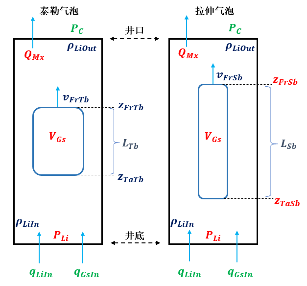 为模拟侵入井筒内气体的运动,将整个井筒看作一个固定边界的控制体积(Control Volume, CV),且CV中仅包含一个气泡,气泡的描述采用“双形”气泡表示方法。