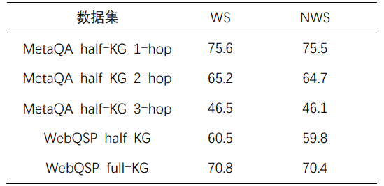 表3 在 WebQSP half-KG 数据集上的结果