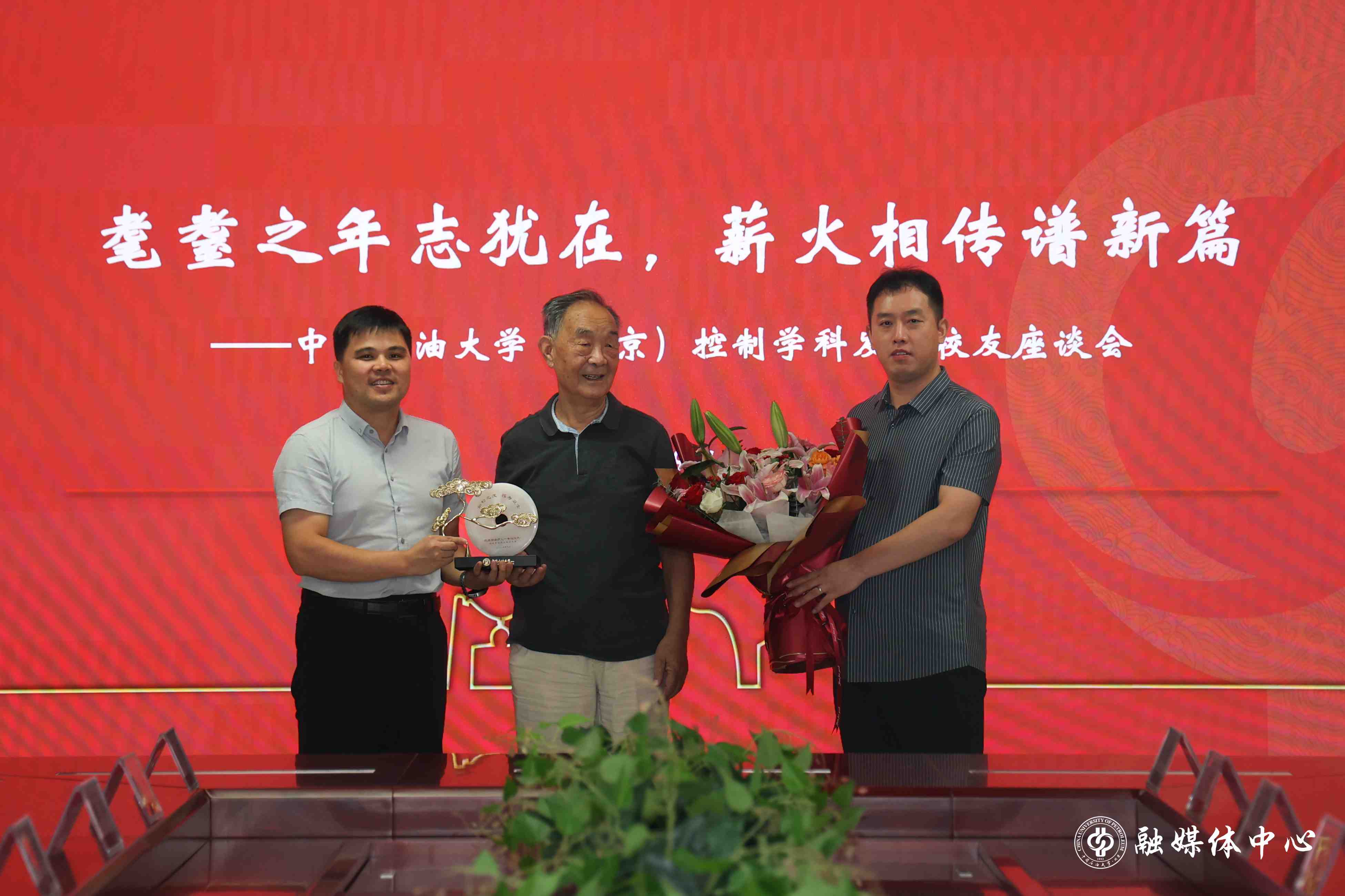 座谈会当天适逢袁璞教授90寿辰,蒲俊霖和beat365在线唯一官网(华东)控制学院副院长陈鸿龙代表两个学校为袁璞教授赠送了礼物,向他为中石大控制学科发展作出的卓越贡献表示崇高敬意。在讲话中,蒲俊霖高度肯定了校友们在捐资助学、校企合作等方面为母校作出的贡献。他表示,中石大控制学科有着光荣的历史,以袁璞教授为代表的老一辈中石大人用奋斗和智慧为学校和学科的发展奠定了坚实的基础。当前,大数据、人工智能等新一代信息技术不断突破,能源行业智能化发展、数字化转型为学校提供了新的机遇,希望广大校友继续关心、支持学校的改革发展,凝心聚力,携手开创学校高质量发展新格局。