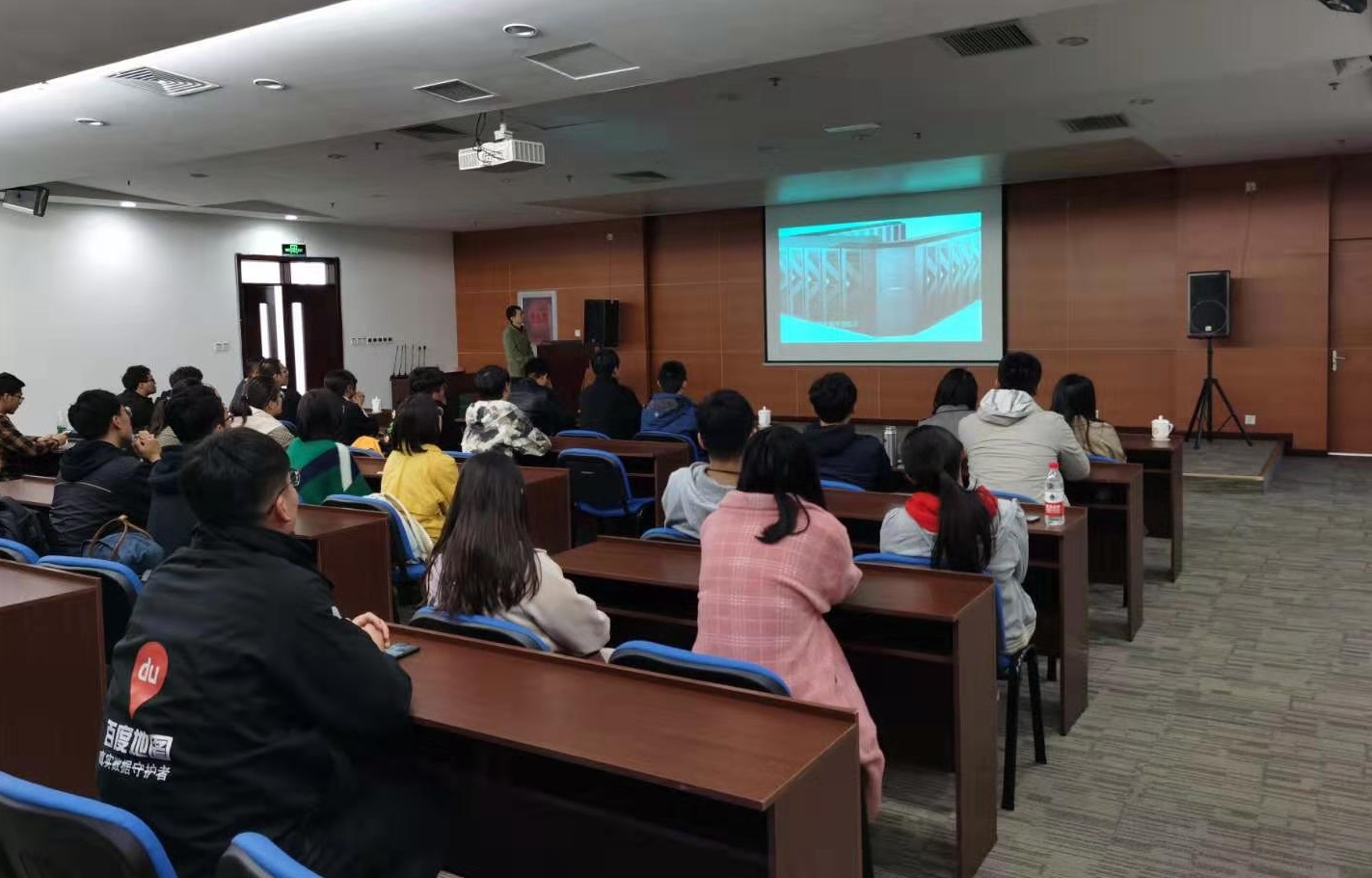 在中国科学院计算机网络信息中心,中心相关负责人介绍了超算中心的基本情况,着重讲解了超级计算机“元”的硬件环境及其在地震预测、航空航天、新材料研发等方面的应用,院长刘伟峰结合自己所开设的《数值分析》和《并行程序设计》课程相关内容开展现场思政示范课,他表示,经过几代人不懈的努力,我国超算研究和应用已跃居全球前列,超级计算机作为国之重器,无论是制造业转型升级,还是抢占未来高新技术产业先机,均起到了重要作用。随后,大家实地参观了 “元”和“地球大数据”两台超级计算机。