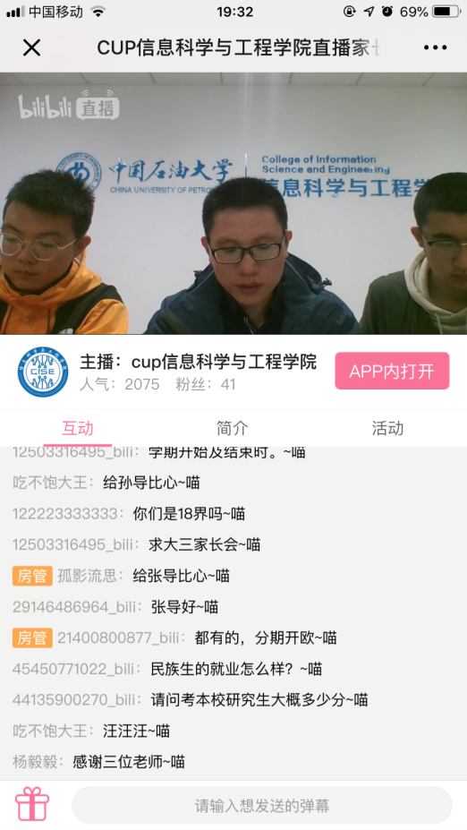 此次通过网络直播形式开大学生家长会在校内尚属首次。直播持续近1小时,主要包括宣讲和提问互动两个环节,信息科学与工程学院党委副书记于迎辉介绍了学院成立后的基本情况,并就家长们普遍关注的转专业、考研、就业及相关规章制度等方面作了重点解读。直播过程中,学院各年级辅导员对学生家长提出的一些问题进行了解答。