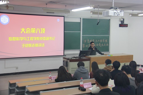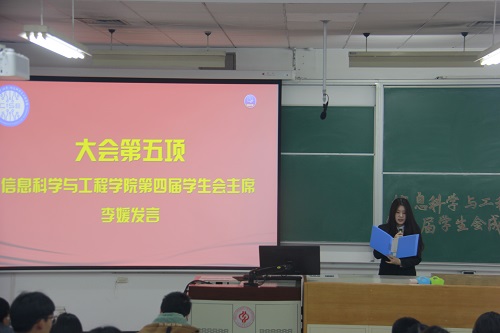 10月16日晚,信息科学与工程学院第四届学生会成立大会在三教106教室召开,学院党委副书记于迎辉、团委书记代莉莎、各社团指导教师、学校及兄弟学院学生组织代表和学院第四届学生会全体成员参加成立大会。