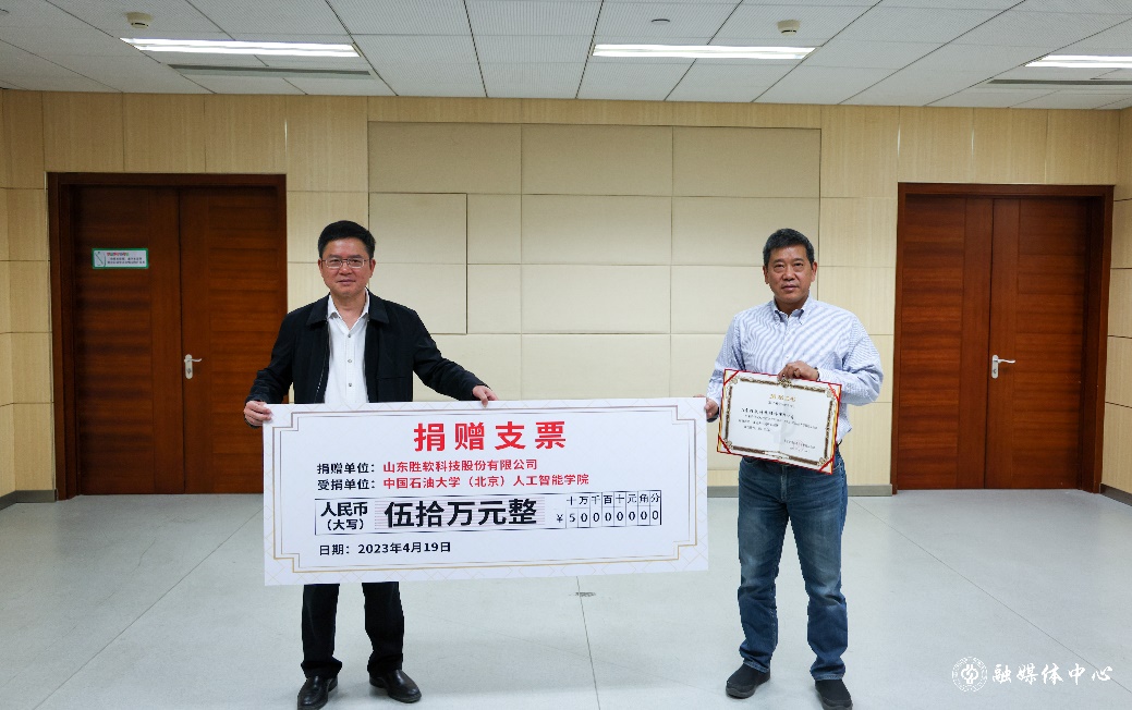 4月19日,山东胜软科技股份有限公司董事长徐亚飞一行来中石大访问交流并与人工智能学院签署了战略合作协议。胜软科技向北京beat365在线唯一官网教育基金会捐赠人民币50万元整,用于人工智能学院设立“胜软科技人工智能奖学金”,并同时成立“中石大人工智能学院-胜软科技智能油气软件联合研究中心”。东营市经济开发区、中国石化有关部门负责同志,中国工程院院士张来斌以及学校科学技术处、人工智能学院负责人参加了签约仪式。