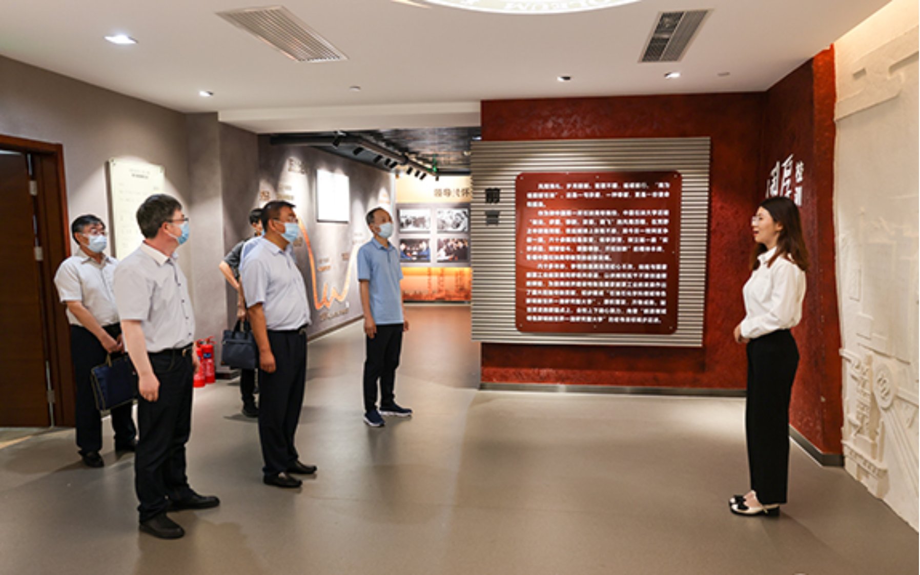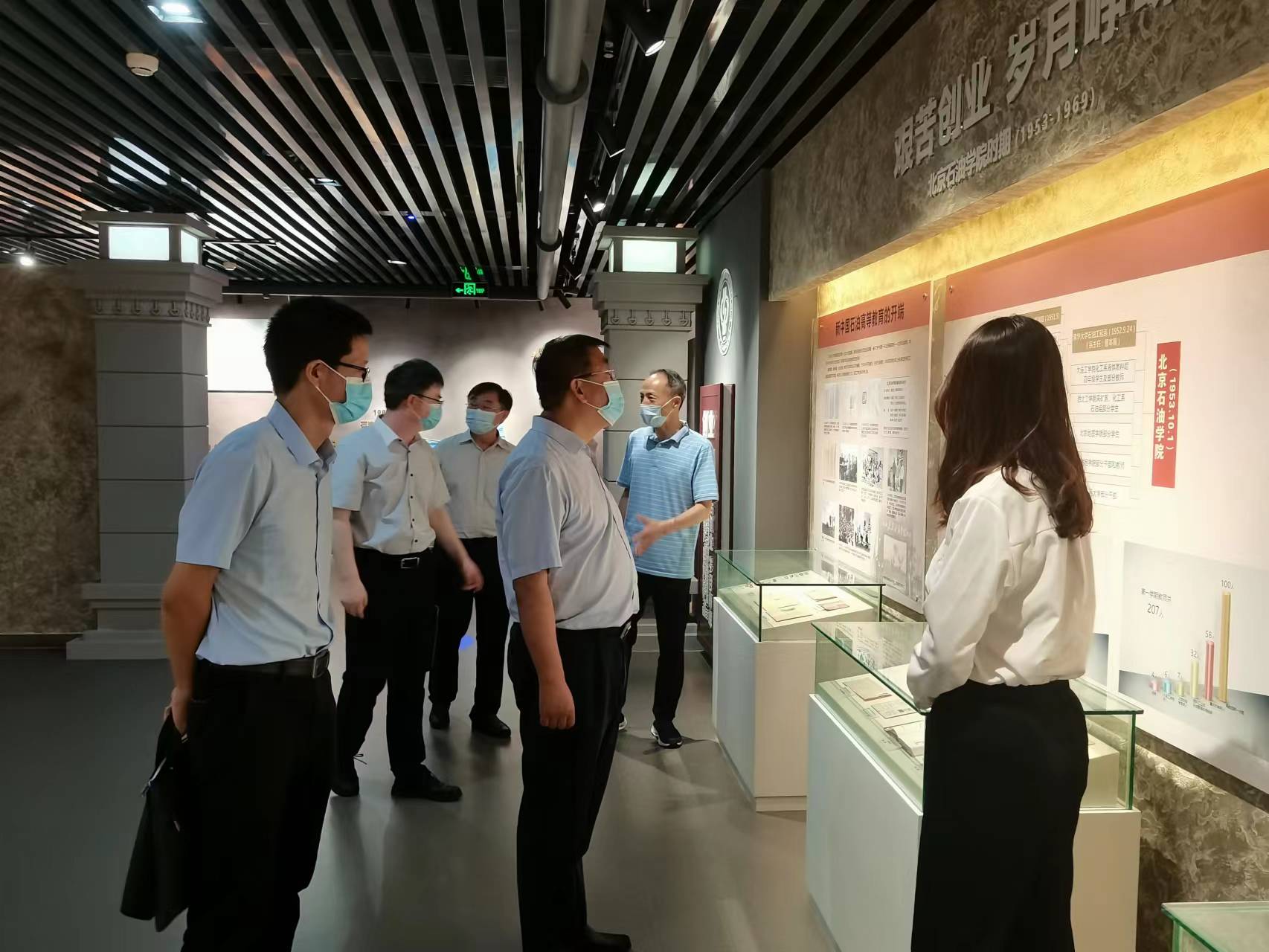 7月18日下午,克拉玛依市委常委、市委教育工委书记冯述江一行在beat365在线唯一官网(北京)副校长鲍志东,副校长、克拉玛依校区党委书记、校长梁永图陪同下参观了校史馆。
