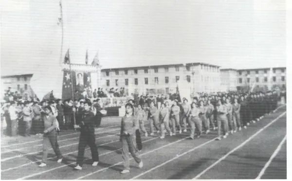 中石大师生在红旗操场上进行艰苦的训练