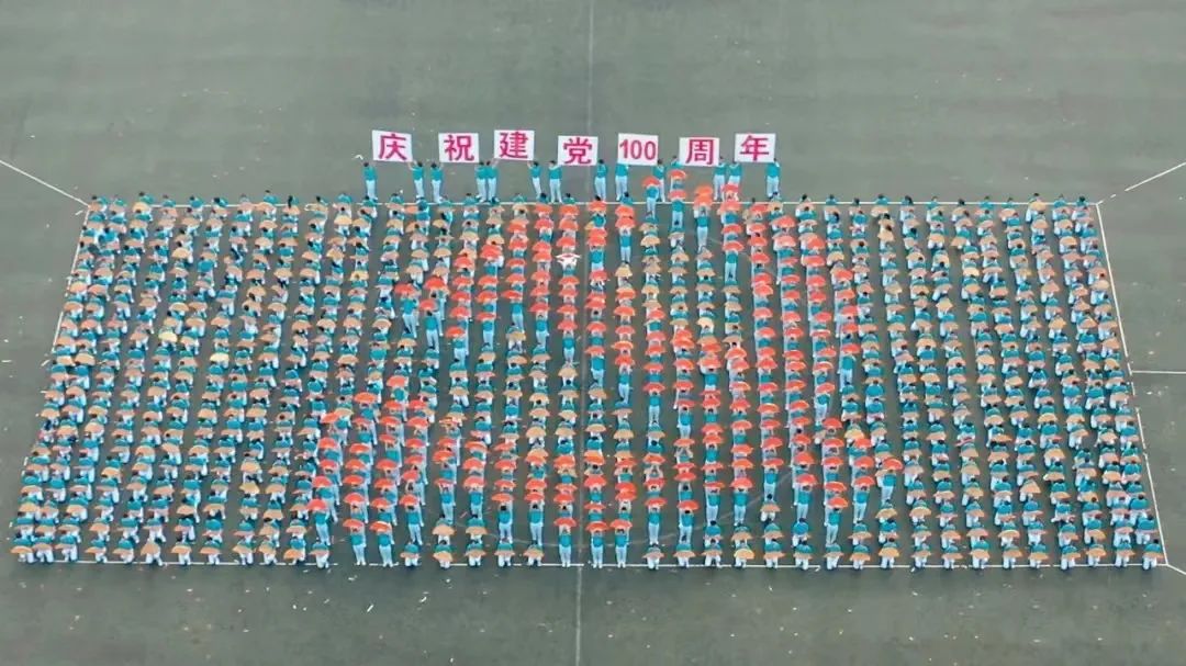 在红旗操场还曾留下中石大师生对建党百年的深情献礼。在学校2021年春季田径运动会上,师生在精彩的团体操方阵表演中通过不断变换队形,摆出“100”“1921”“2021”“CUP”等字样以及“党徽”等标志,这是对中国共产党成立100周年的深切祝福,是用行动践行着将青春献给党的郑重承诺!