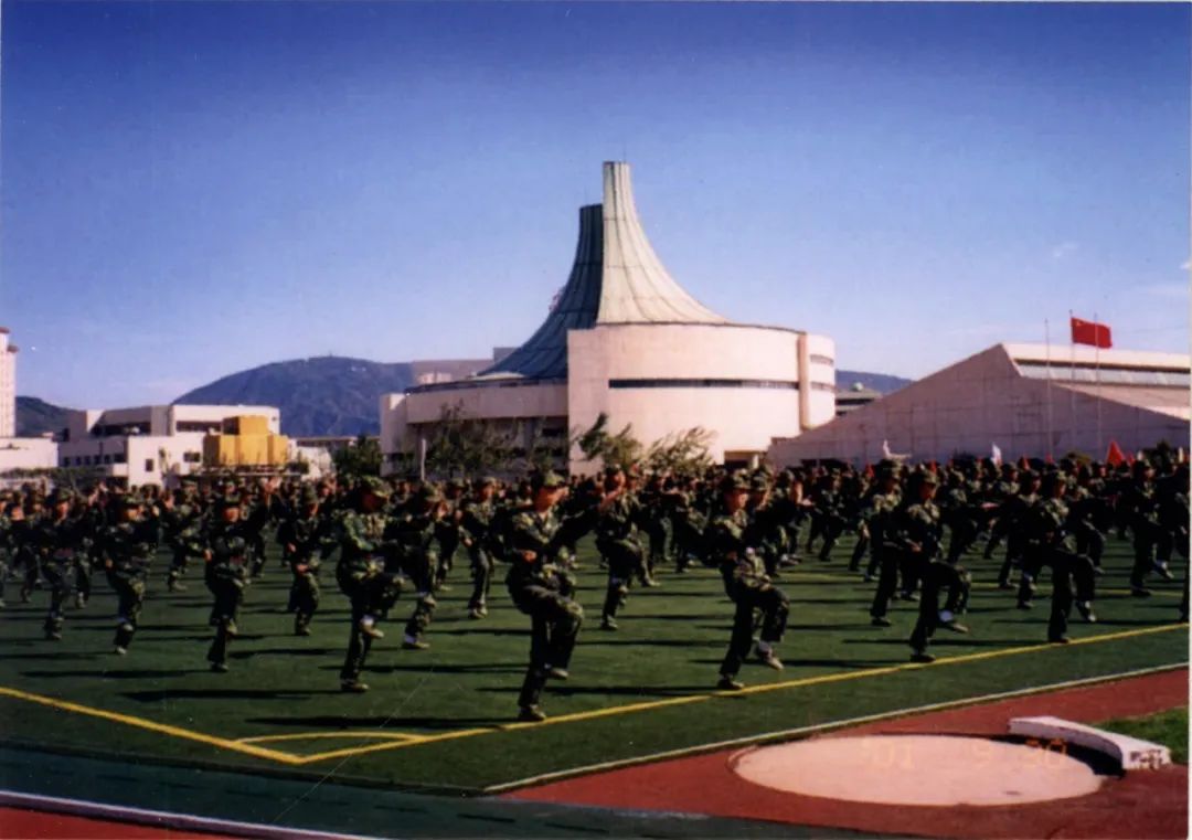 2001年9月,在红旗操场上举行的新生军训汇报演出