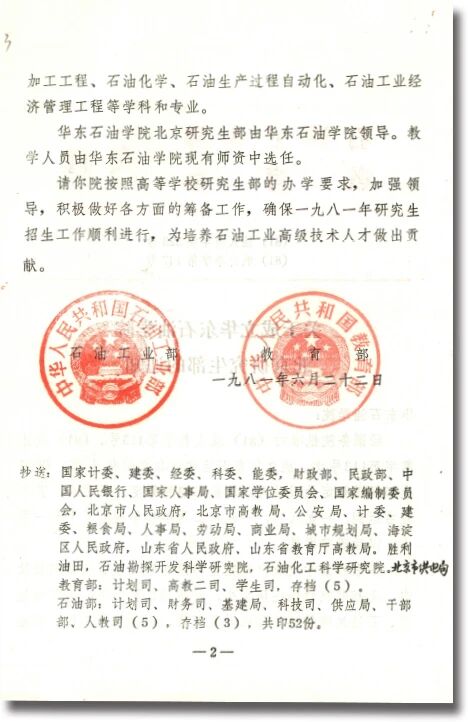 关于成立华东石油学院北京研究生部的通知